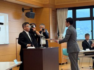 令和8年4月1日、令和8年度島原市消防団辞令交付式・協力事業所表示証交付式を執り行いました。