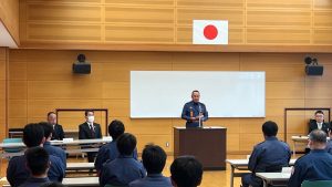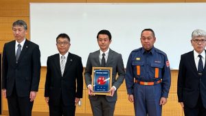 また、島原市消防団協力事業所として新たに「株式会社園田工務店」様を認定し、協力事業所表示証を交付させていただきました。これからも島原市消防団へご協力をお願いいたします。