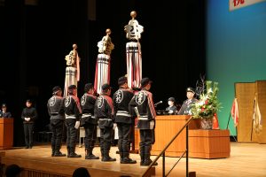第1会場の式典においては地域の安全・安心のために日々尽力された消防団の皆さんを表彰しました。