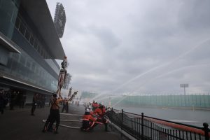 また、今回から第2会場の分列行進及び第3会場の一斉放水の会場をボートレースおおむらに変更し実施しました。