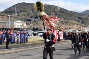 3年に1度の連合出初式となった今回は、波佐見町で町長・団長表彰終了後、川棚町へ移動し、式典をはじめ、観閲・市中行進を行い、一斉放水を実施しました。