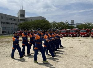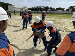 団員たちは強い日差しが照りつける中、大粒の汗を流しながら、技能習得のため真剣な表情で取り組んでいました。