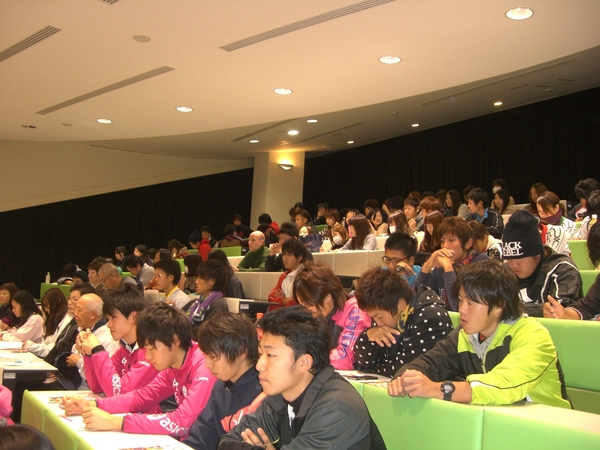 佐世保市では、11月30日に消防団員加入促進事業として、長崎国際大学と合同で映画「ふるさとがえり」の上映会を開催しました。その後、12月4日に本映画の脚本家でもある栗山宗広氏をお招きし、地域の絆の大切さなどについての講義を行いました。