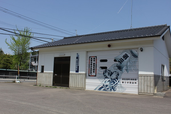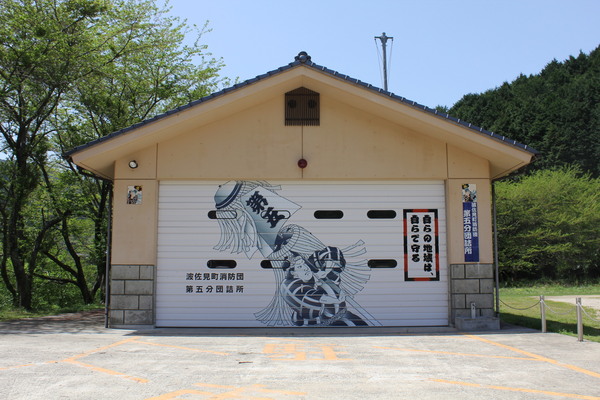 波佐見町では、地域防災力の強化を図り、安全・安心なまちを目指すため、消防団員への加入促進を図っています。今年度、「長崎県消防団充実強化促進事業」を活用して、新たに消防詰所2箇所において、シャッター部分に消防団をPRする標語とイラストを描画しました。さらに、庁舎に懸垂幕、交通量の多い交差点に看板を設置し、消防団員の募集・啓発に取り組んでいます。