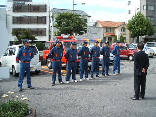 全国的にも被用者(サラリーマン)の団員が増加し、平日(日中)の火災発生時の人員確保は課題の一つとなる中、島原市では、今年三月より「市役所消防隊」が発足しました。と言っても、何ら特別なものではなく、通常は各分団に所属し、活動する消防団員である市職員が、平日の勤務時間中に限り、詰所からではなく職場(庁舎)から直接火災現場に出動するというものです。出動用の車両は、既存の公用車(緊急車両)を本庁舎、有明庁舎に各一台配備しています。これまでは、一旦所属の詰所に向かう団員や、職場的に出動しづらい団員等もおりましたが、体制を明確にすることで、より迅速な対応ができ、消火活動の充実が図られるものと期待しております。 これまで、実際の出動はまだありませんが、いつでも出動、また消火活動ができるよう、7月からは月に一回車両の点検や、水利の確認等を実施するようにしており、市民の負託に応えられるよう、努力していきたいと考えています。