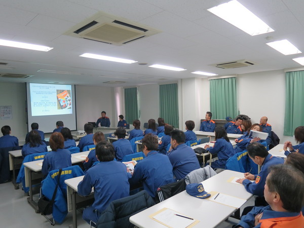 長崎県より平成27年度消防団充実強化促進事業費補助金を助成いただき、平成27年10月29日に佐賀市において開催された、第21回全国女性消防団員活性化佐賀大会へ7名の女性消防団員が参加した。その報告会を兼ねて、平成28年2月7日(日)、壱岐文化ホール会議室において研修会を開催した。 報告会では、参加された女性消防団員が大会の様子を発表し、参加していない他の団員と情報を共有した。また、その後の研修会ではグループ討議を行い、各所属での活動内容や活動に際しての問題点等を洗い出し、来年度の活動目標を設定した。 壱岐市では、女性消防団員が減少傾向にあるが、それも感じさせない活気溢れる研修会となった。