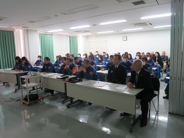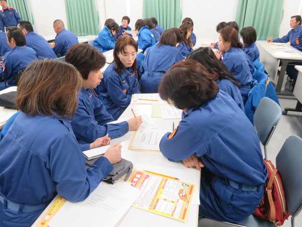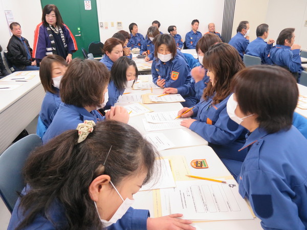 報告会では、参加された女性消防団員が大会の様子や感じた事を発表し、参加していない他の団員と情報を共有しました。また、その後の研修会では「災害時における女性消防団員の役割」をテーマにグループ討議を行い、各所属での活動内容や活動に際しての問題点等を洗い出し、来年度の活動目標を設定しました。この報告会、研修会には中原壱岐市副市長も参加され、「女性ならではのきめ細やかな活動は絶対に必要です。市としても全面的にバックアップできるよう努めます」と講評されました。