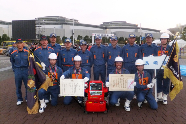 去る平成24年10月7日(日)東京都江東区、東京臨海広域防災公園で開催された第23回全国消防操法大会小型ポンプ操法の部において、壱岐市消防団が念願の初優勝を果たした。大会当日は悪天候で足元が滑りやすく心配されたが、安全・確実・迅速な操法を展開し見事全国の消防団の頂点へと輝いた。 この結果に驕ることなく、これからも地域住民の安心・安全を守るために壱岐市消防団一同尚一層邁進していく所存であります。 この大会に際し、ご支援ご協力をいただいた関係者の皆様方には心よりお礼申し上げます。多大なるご声援ありがとうございました。