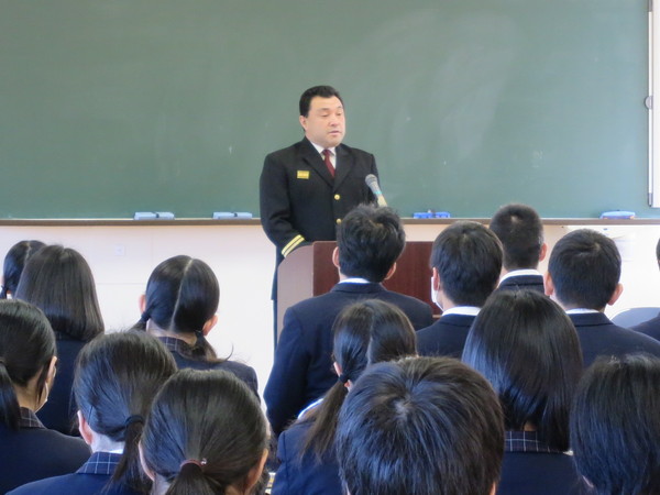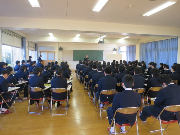 平成28年2月10日(水)、長崎県立壱岐商業高等学校の3年生約100名を対象に講話を同校にて開催した。壱岐市消防団勝本地区副団長中原正博氏を講師として招聘し、約30分に亘って消防団の組織や活動内容、消防団の現状等について講話を行った。 高校生からは多くの質問が飛び出すなど、消防団活動に対して興味を持つ生徒が多く、今後の消防団員確保に期待がもてる。 講師を務めた中原副団長からは、最後に「君たちと一緒にこの島を守りたい!」と熱意がこもったひと言をいただいた。